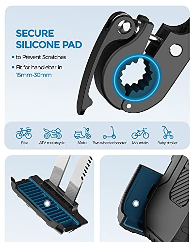 Eenvoudig te installeren: de telefoonhouder voor de motorfiets kan probleemloos zonder gereedschap worden geïnstalleerd; de stuurklemmen zijn uitgerust met 2 siliconen kussens, die compatibel zijn met sturen met een diameter van 15 tot 33 mm. Je kunt de pads toevoegen of verwijderen om ze aan je stuur aan te passen.