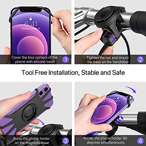 Specification: Telefoonhouder voor Fiets Afneembaar, 360° Rotatie Universeel Verstelbaar Siliconen Fietshouder Telefoon, telefoonhouder voor Smartphones van 4,7-6,9 Inch, Compatibel met iPhone 13 12 11Pro Max